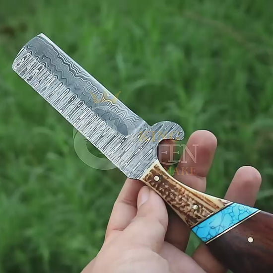 Featuring a Razor Sharp Damascus steel blade with a unique mix twist pattern, this knife is as functional as it is visually striking. The handle complements the blade, adding a touch of elegance and providing exceptional control.